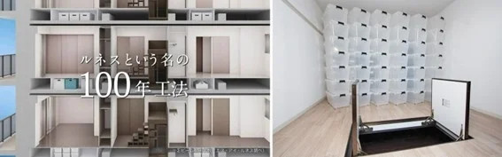 高層階住戸(14階・15階)に採用したルネス工法による床下トランクルームは、収納力と空間効率を飛躍的に向上させています。