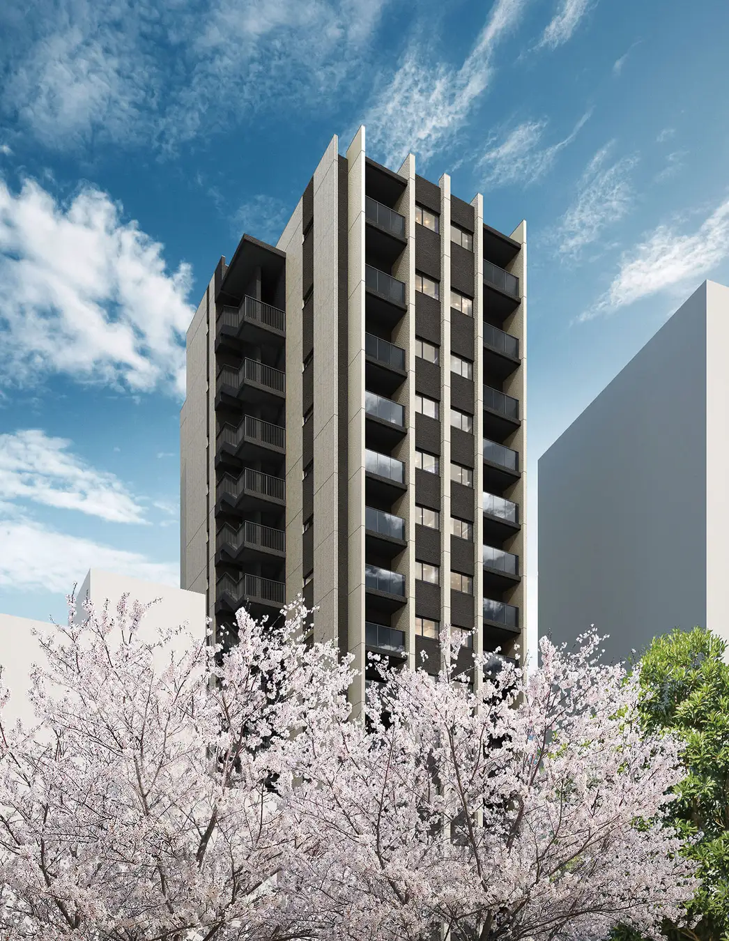 ※外観完成予想図に描かれている絵図は、現地前の桜の開花時期を表現したもので、実際は季節により異なります。